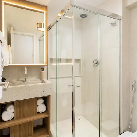 Επιπλέον, έχει ξεχωριστή τουαλέτα και ντους. Το διαμέρισμα Conforto E Estilo - 2 Min Da Praia παρέχει χαμάμ και σάουνα για να κάνει τη διαμονή των επισκεπτών ακόμα πιο χαλαρωτική.